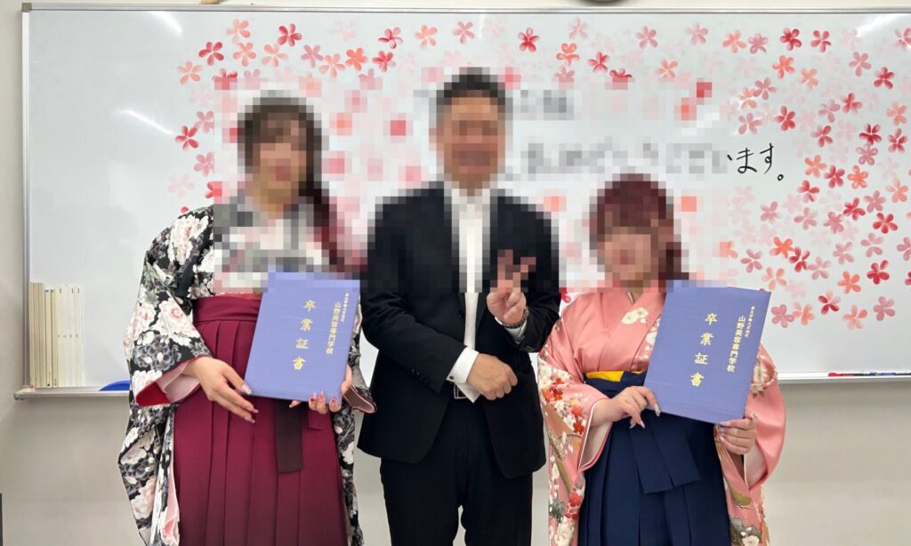 式典後には山野愛子校長と保護者のツーショットタイムがあり、ばっちり愛子先生と写真をとってきました。愛子先生カワイイ、ネイルもカワイイ。お着物の柄が山野タワーだった!..斬新すぎる。