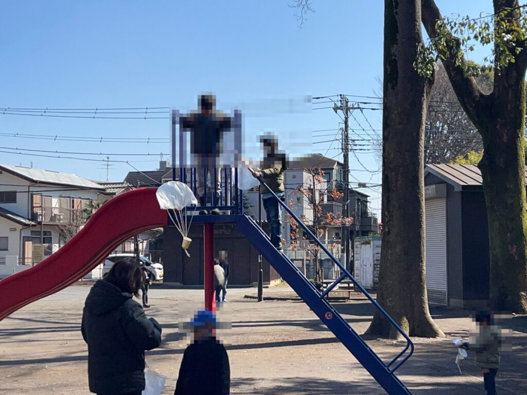 ビーバー隊はパラシュートを作ってました。いい感じに落下していていました。