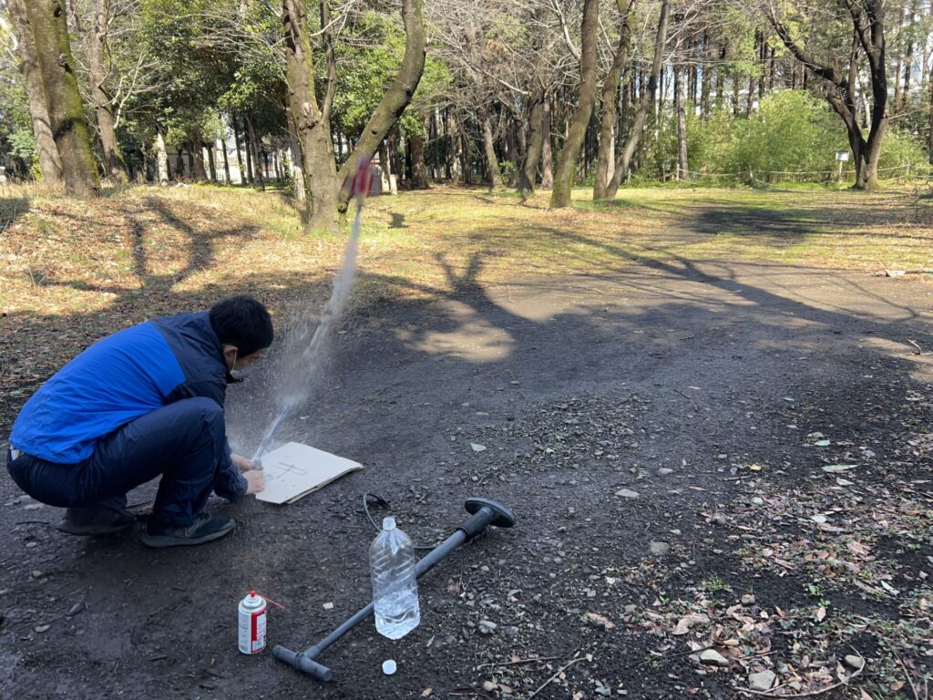 この日はなんの集会だったか全く思い出せないのですが、カブの隊長がペットボトルロケットを飛ばしていました。