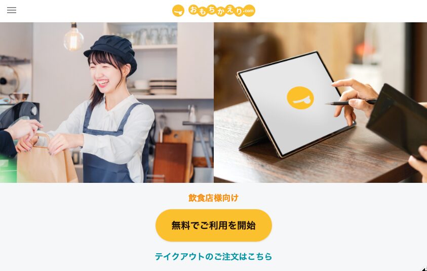おもちかえり.comは飲食店向けの無料で利用できるテイクアウトシステムで、新型コロナウイルスの大流行で不況に立たされた飲食店を支援するために立ち上がったプロジェクトです。今ではコロナもおちつきましたが、おもちかえり.comの開発運営は継続しておこなっています。